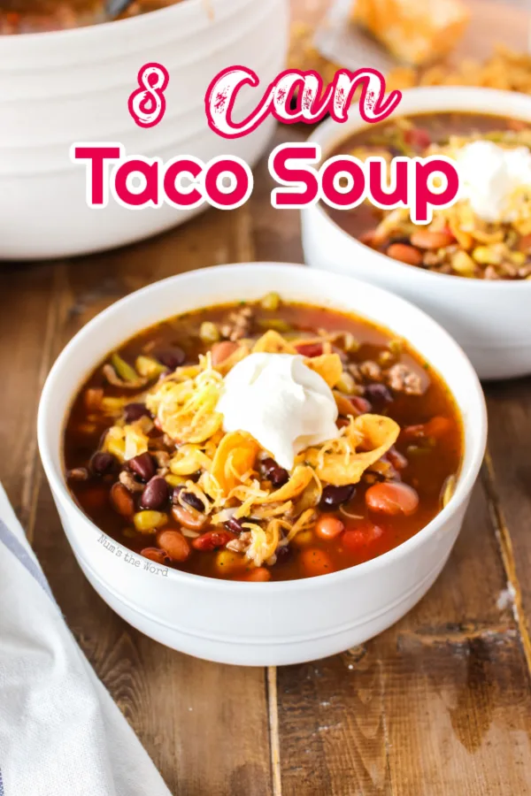 Here on Num’s the Word, I am a big fan of creating delicious meals that have minimal prep time and are excellent as leftovers. This 8 Can Taco Soup hits all of my requirements for the perfect home cooked meal.