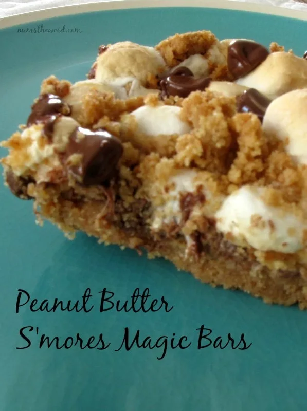 I took a dessert that my mom would make (you know the yummy, gooey one with nuts and coconut and chocolate and sweetened condensed milk on a graham cracker crust) and changed it to involve my favorite foods at the time: peanut butter and marshmallows.